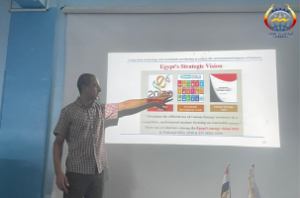 The seminar opened with a lecture by Dr. Abdel-Akher El-Sayed El-Bahnassawy, Lecturer in the Electrical Engineering Department. His presentation addressed the environmental impacts of traditional industries, introduced the concepts of the circular economy, and explored strategies for resource reuse and the deployment of highly efficient energy systems to reduce harmful emissions. Dr. El-Bahnassawy also highlighted the Egyptian government’s efforts to expand clean energy projects, including wind and solar power plants. The lecture was followed by an engaging session of questions, discussions, and active participation from attendees.
