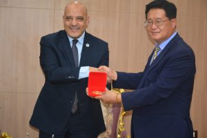 استقبل اليوم الأربعاء الأستاذ الدكتور/ أيمن محمود عثمان _رئيس جامعة أسوان عمدة مدينة جوانجو Gwangju بدولة كوريا الجنوبية السفير يوون يوا تشول، والوفد المرافق له بالحرم الجامعي بصحاري .