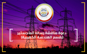 يتشرف قسم الهندسة الكهربية بكلية هندسة الطاقة بدعوة سيادتكم لحضور المناقشة العلنية لرسالة الماجستير المقدمة من المهندس/ محمد علاء الدين الكردي وذلك يوم الخميس الموافق 12 يناير 2023م الساعة الثانية عشرة ظهرًا بقاعة السيمنار بالكلية والتي بعنوان: