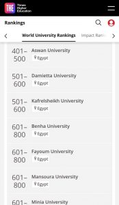 وأضاف سيادته أن الجامعة تُعد مُصنَّفة الأولى على الجامعات المصرية ومن ضمن أفضل 500 جامعة على مستوى العالم طبقًا لتصنيف تايمز هاير إديوكيشن والذى يعتمد على 13 مؤشر أداء تمت معايرتها بعناية من خلال قياس أداء المؤسسة عبر التدريس والبحث العلمي ونقل المعرفة والإشارات الدولية.