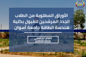 يتقدم السيد الأستاذ الدكتور/ طارق حسن محمد_ عميد كلية هندسة الطاقة جامعة أسوان، والسادة أعضاء هيئة التدريس ، ومعاونيهم، وجميع السادة العاملين بالكلية ، بتهنئة الطلاب الجدد المرشحين للقبول بالكلية للعام الجامعي 2025/2026م.