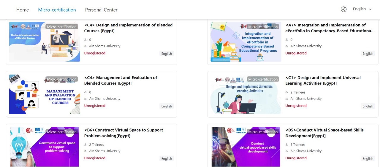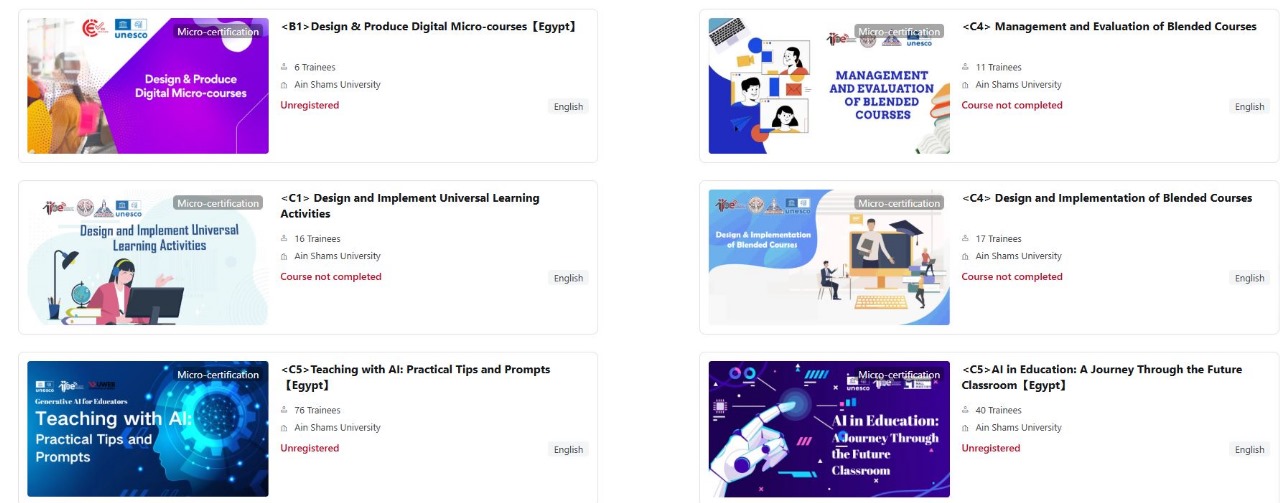 في إطار جهود المركز المصري للمعهد الدولي للتعليم عن بعد (IIOE Egypt)، وبالشراكة مع المركز الدولي للابتكار في التعليم العالي عبر الإنترنت تحت رعاية اليونسكو (UNESCO-ICHEI)، لتعزيز مهارات التدريس الرقمي لأعضاء هيئة التدريس في الجامعات المصرية، يقدّم المركز مجموعة من الدورات التدريبية المجانية عبر منصة IIOE Egypt.