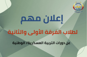 1- سيتم عقد دورة (التربية العسكرية/ الوطنية) للطلاب الذكور والإناث المقيدين بالفرقة الأولى/ والإعدادية للعام الدراسي 2026/2025م، خلال السنة الدراسية الأولى والثانية التي تلي قيد الطالب بالجامعة، على أن تعقد دورة أو أكثر (استثنائية) للتخلفات والأعذار القانونية خلال السنة الدراسية الثالثة أسوة بالطالبات الإناث.