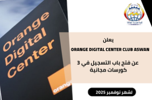 يعلن Orange Digital Center Club Aswan عن فتح باب التسجيل في 3 دورات تدريبية مجانية بالكامل ضمن برامجه المميزة لشهر نوفمبر 2025, يكتسب المتدرب خلالها المهارات العملية وخبرة حقيقية في التكنولوجيا الحديثة، وذلك ليصبح جزءًا من المستقبل الرقمي، تُقام offline داخل المقر Orange Digital Center Club Aswan بصحاري – جامعة أسوان، داخل مبنى الإدارة القديم الدور الثالث, وهي على النحو التالي: