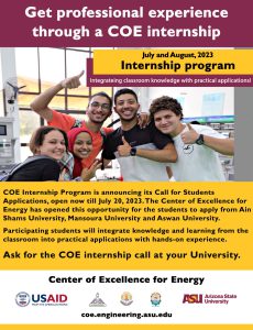 يعلن مركز التميز في الطاقة بجامعة أسوان عن فتح باب التسجيل ببرنامج التدريب الصيفي لطلاب كليات الهندسة والممول بالكامل من المركز, علمًا أن التسجيل متاح من الآن اونلاين حتى يوم الخميس الموافق 20يوليو2023م.