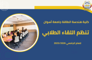 تحت رعاية الأستاذ الدكتور/ لؤي سعدالدين نصرت – رئيس جامعة أسوان، والأستاذ الدكتور/ طارق حسن محمد – عميد كلية هندسة الطاقة، تنظم كلية هندسة الطاقة اللقاء الطلابي للعام الدراسي الجديد 2025/2026م، وذلك يوم الإثنين الموافق 3/11/2025, بقاعة سيمنار كلية هندسة الطاقة الساعة 11 صباحًا.