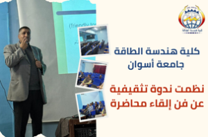 نظمت كلية هندسة الطاقة جامعة أسوان يوم الثلاثاء 9 ديسمبر 2025، ندوة تثقيفية عن فن إلقاء محاضرة، وذلك تحت رعاية الأستاذ الدكتور/ لؤي سعد الدين نصرت_ رئيس جامعة أسوان، والأستاذ الدكتور/ أشرف أمام_ نائب رئيس الجامعة لشئون خدمة المجتمع وتنمية البيئة، والأستاذ الدكتور/ طارق حسن محمد_ عميد كلية هندسة الطاقة، والأستاذ الدكتور/ أحمد ثابت_ وكيل الكلية لشئون خدمة المجتمع وتنمية البيئة، وبحضور كوكبة من أعضاء هيئة التدريس والقيادات الإدارية والهيئة المعاونة والطلاب، وذلك تأكيدًا على حرص الكلية على قيامها بدورها المجتمعي وخدمة البيئة المحيطة وتعزيزًا لنشر العلوم والمعرفة.