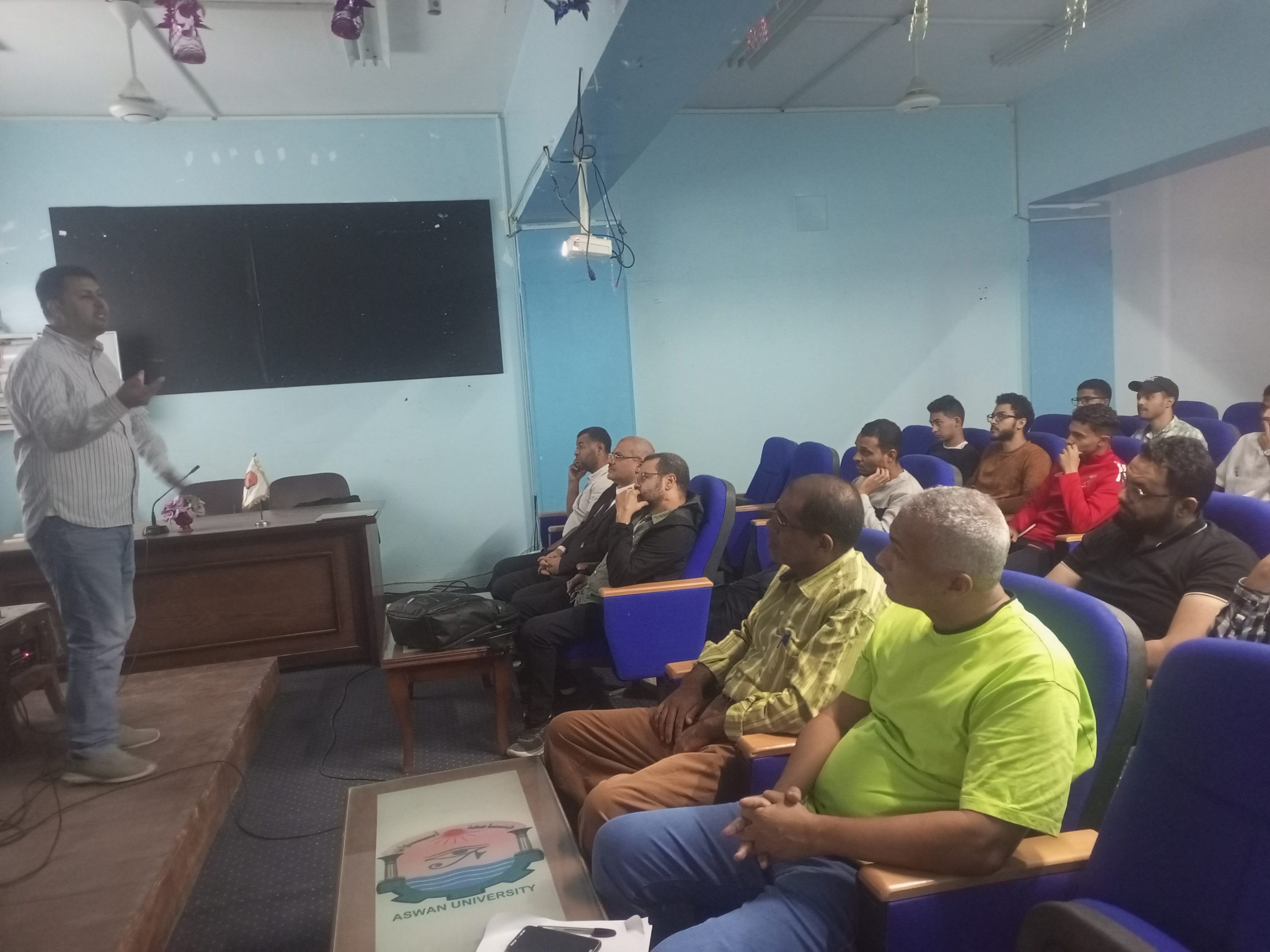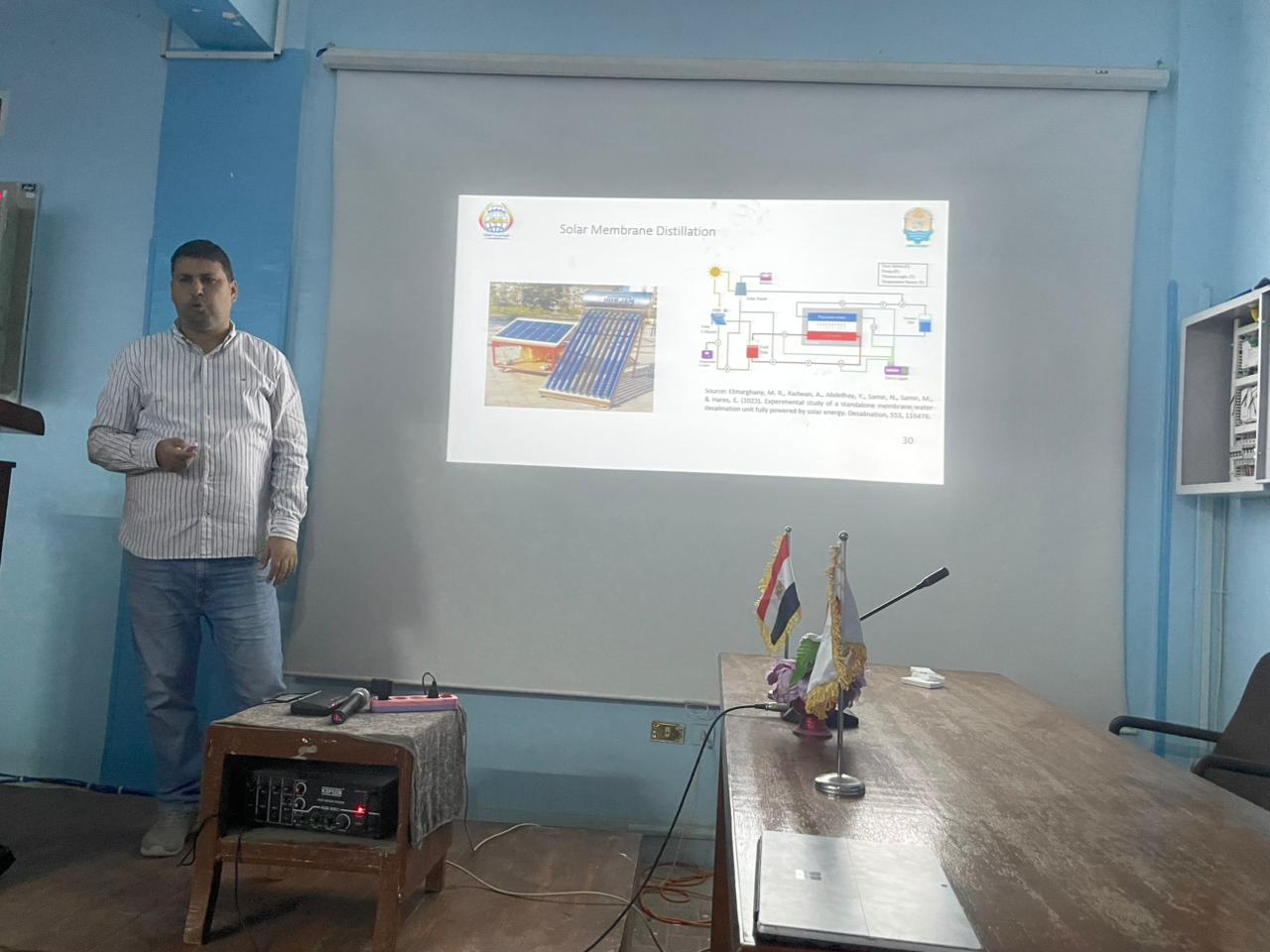 بدأت الندوة بمحاضرة قيمة للدكتور/ عصام الدين محمد عبد الرحمن _المدرس بقسم الهندسة الميكانيكية بالكلية، بدأت بمقدمة رائعة عن توزيع وتنوع مصادر الطاقة بمصر وكذلك تناولت ازمة المياه عالميًا ومفهوم بصمة المياه، تلى ذلك استخدامات أنواع الطاقة المختلفة في مجالات تحلية المياه وختمت باستخدامات الطاقة المتجددة في تحلية المياه والأنظمة المبتكرة والمحدثة في هذه المجالات، بالإضافة إلى المشاركات الفعالة من قبل السادة الحضور، ومجموعة من الأسئلة والنقاشات.