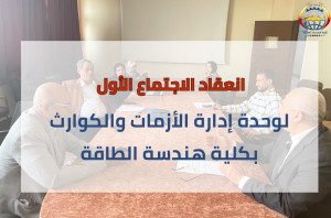 انعقد الاجتماع الأول لوحدة إدارة الأزمات والكوارث بكلية هندسة الطاقة جامعة أسوان، برئاسة الأستاذ الدكتور/ طارق حسن محمد_ عميد الكلية، وذلك يوم الثلاثاء 17فبراير 2026م، وبحضور أعضاء اللجنة الأستاذ الدكتور/ أحمد ثابت_ وكيل الكلية لشؤون البيئة وخدمة المجتمع، والأستاذ الدكتور/ محمد فتحي_ وكيل الكلية للدراسات العليا، والدكتور/ وليد عبد الفضيل_ مدير وحدة الجودة بالكلية ولفيف من أعضاء اللجنة.