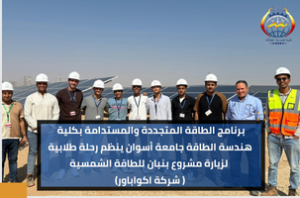 نظم برنامج الطاقة المتجددة والمستدامة بكلية هندسة الطاقة جامعة أسوان رحلة طلابية لزيارة مشروع بنبان للطاقة الشمسية (شركة اكواباور ) في يوم الخميس الموافق 30 أكتوبر 2025، وذلك تحت رعاية الأستاذ الدكتور/ لؤي سعدالدين نصرت – رئيس جامعة أسوان، و الأستاذ الدكتور/ طارق حسن محمد – عميد كلية هندسة الطاقة.